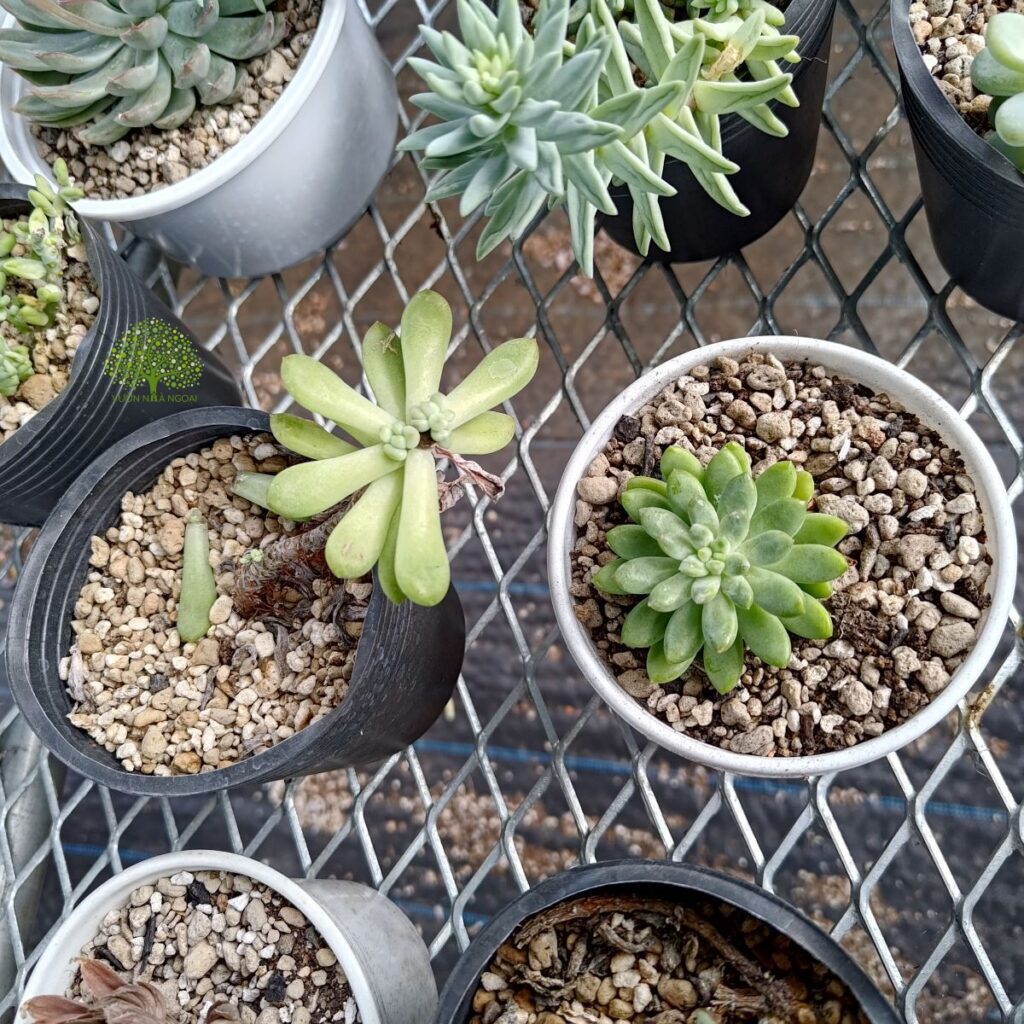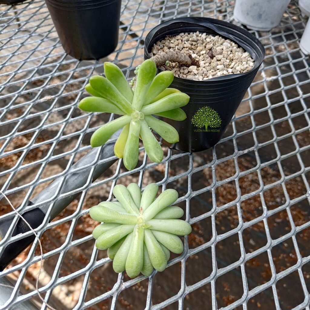 Cây con từ ngọn cắt và cây mẹ. Cây mẹ để ngoài nắng cũng đã mọc ra chồi mới.