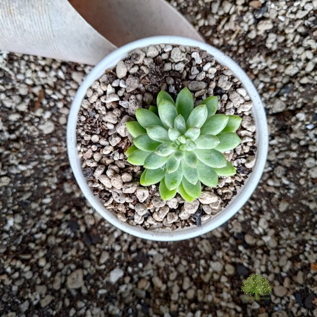 Đối với những cây có lá mọc rất sát nhau như cây sen đá thược dược này thì việc dùng dao hoặc kéo để cắt ngọn là rất khó. Cách đơn giản nhất là dùng một cọng dây dù (hoặc dây đồng/kẽm) nhỏ.
