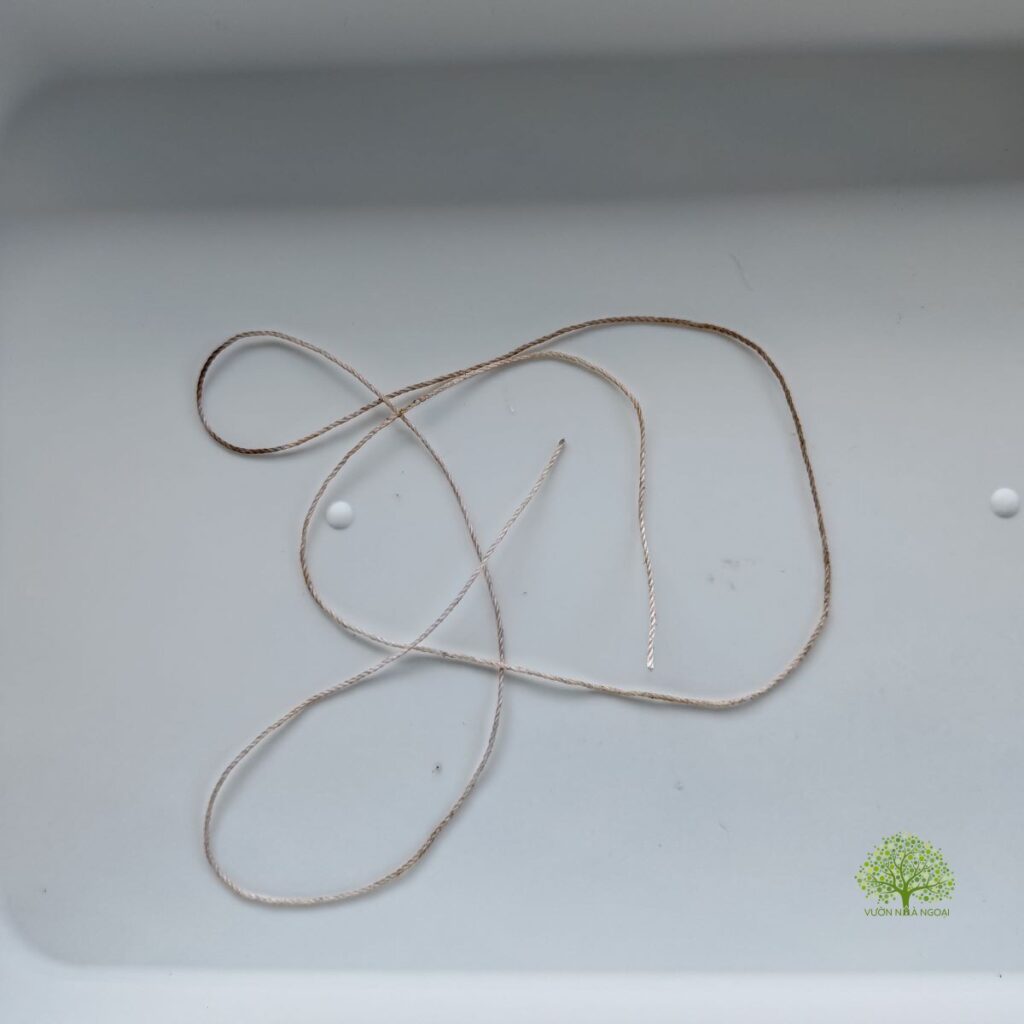 Luồn dây qua các kẽ lá, thành 1 vòng quanh thân cây, rồi kéo mạnh 2 đầu dây.
