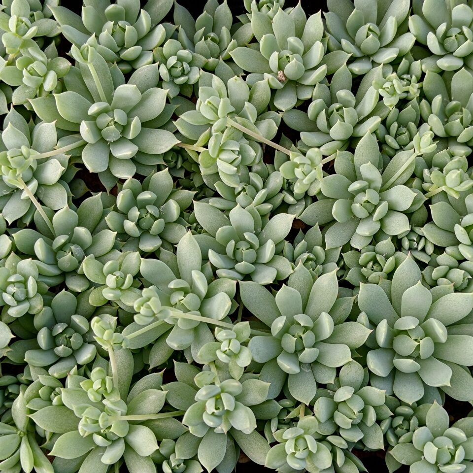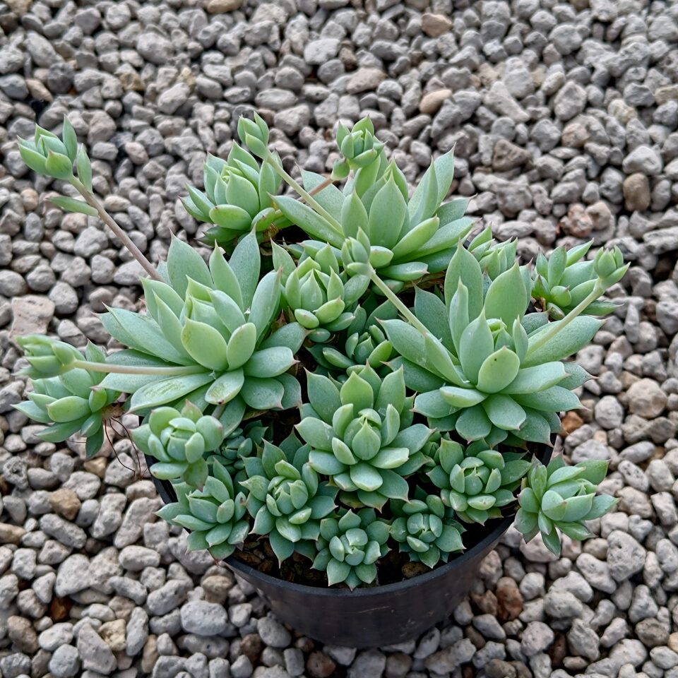 Sen dù là một loại cây mọng nước nhỏ, thường mọc thành từng cụm, với những chiếc lá màu xanh lục pha chút xanh lam tươi sáng, khi để ngoài nắng thường xuyên lá có thêm các đốm hồng. Cây có thân ngầm dài và thường đẻ rất nhiều chồi con từ thân chính.